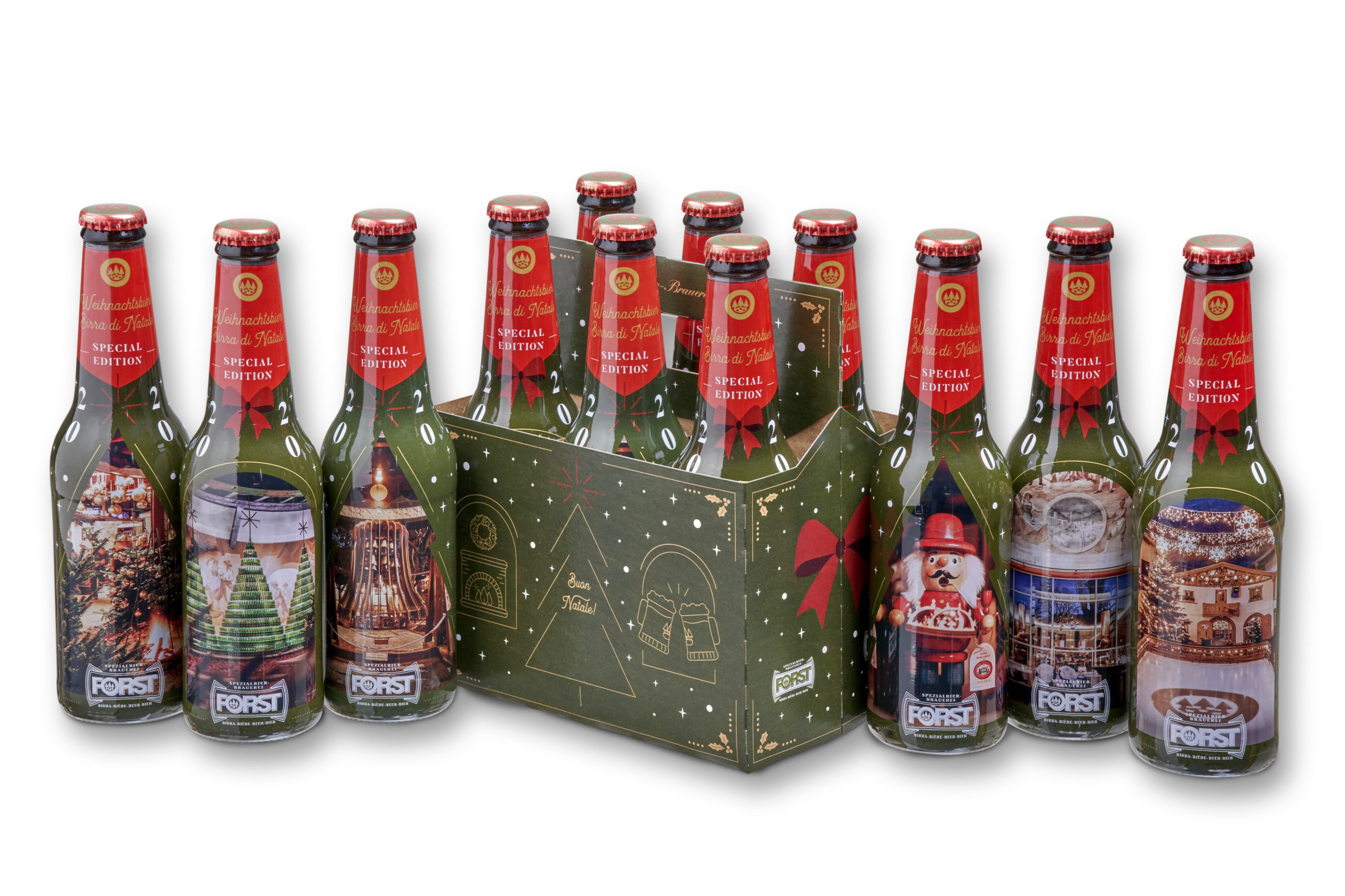 Tra i prodotti natalizi spicca la tanto amata 17° edizione limitata della Birra di Natale FORST nella preziosa bottiglia da due litri in vetro, che ogni anno diventa un ambito e unico pezzo da collezione.