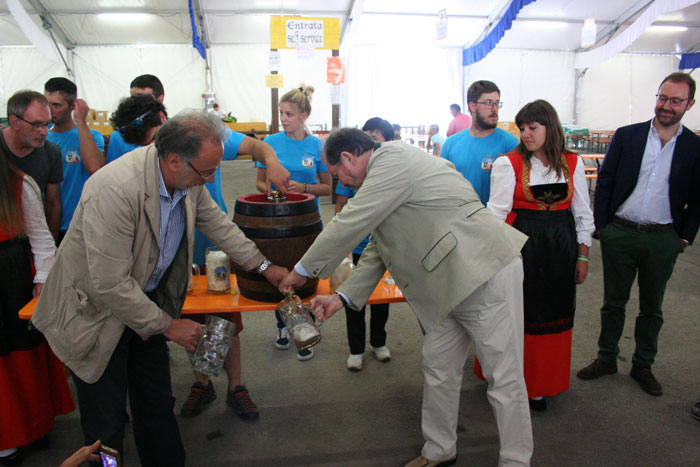In occasione della festa del patrono, San Giovanni, il Gruppo Folkloristico di Gressoney organizza quattro giorni di BierFest; ne abbiamo parlato con Amando, presidente del Gruppo, che in questa piccola realtà sociale coinvolge più di 150 giovani nell’organizzazione della festa e di altre iniziative a sostegno delle tradizioni e della identità originali del loro paese. È la ventiseiesima Bierfest che è partita il 21 giugno con la tradizionale apertura della botte della Festbier Kühbacher.