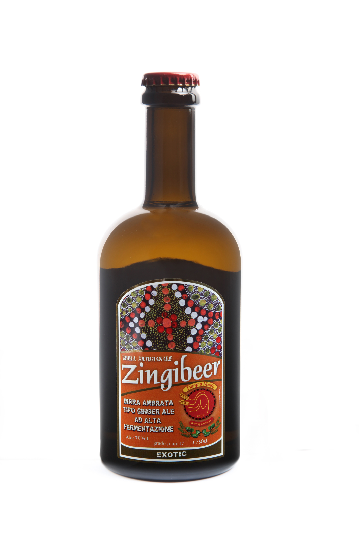 Birra ambrata tipo ginger ale, prodotta usando zenzero fresco che le conferisce proprietà rinfrescanti e digestive. Appena si avvicina il naso al bicchiere sprigiona un intenso profumo di ginger (zenzero), sentori di caramello dati dalla generosità del malto usato in produzione. Nel palato ritroviamo intensamente il ginger che scalda la bocca producendo un effetto quasi balsamico, note di caramello che anticipano il retrogusto amaro di nocciole e mandorle da attribuire alla speziatura del ginger e del luppolo americano utilizzato.