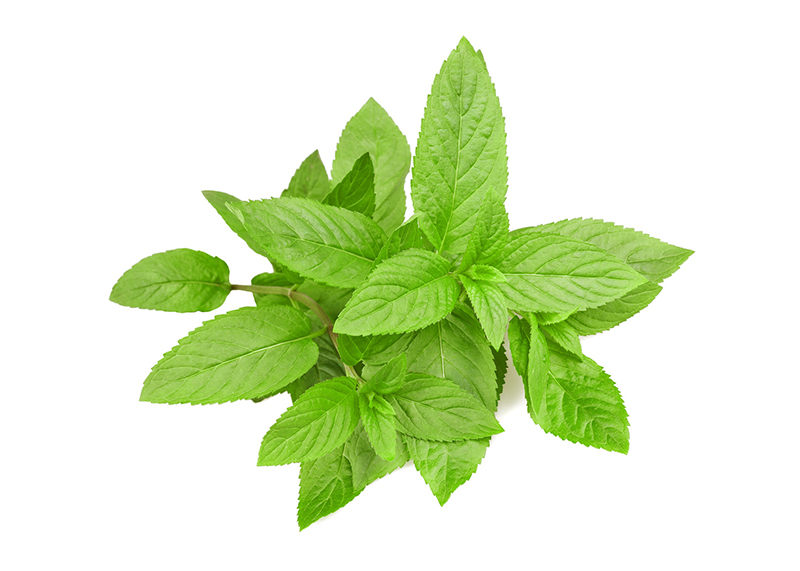 Menta. Le varietà sono la piperita, l’acquatica e la spicata. Utilizzata per la preparazione di bevande dissetanti.