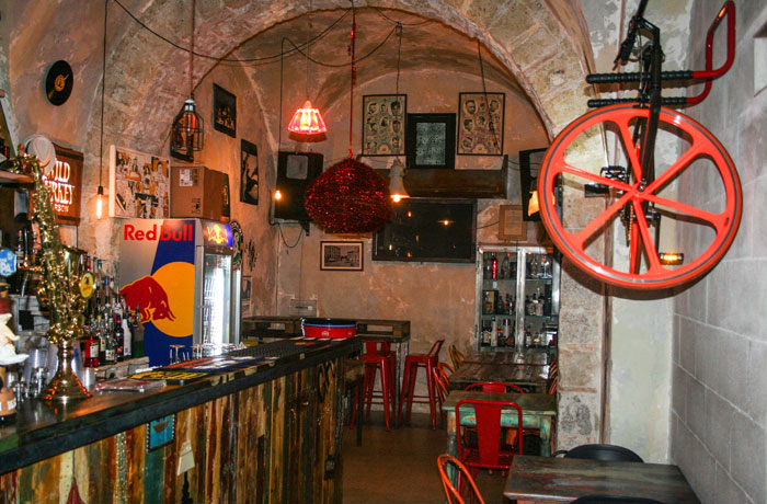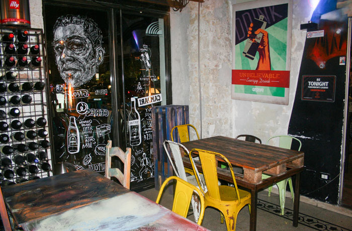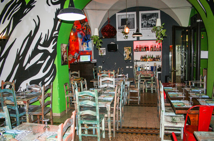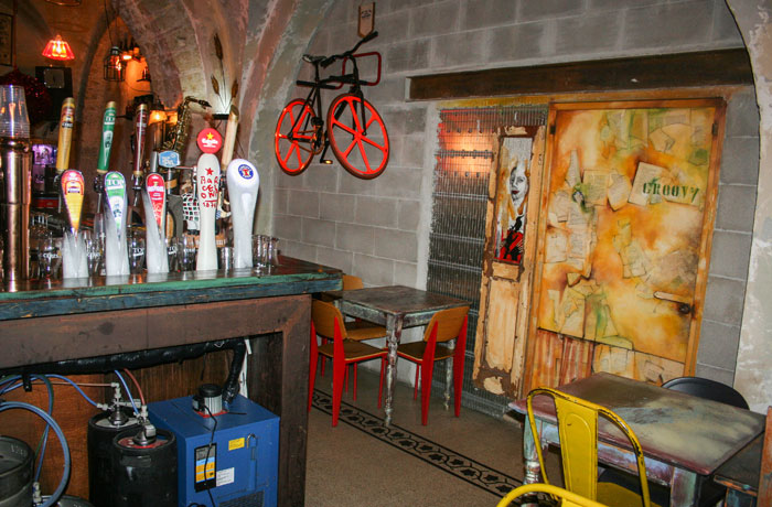 Al posto del Groovy una volta c’era un bar, storico anche quello. Dell’antico esercizio non è rimasto praticamente nulla: il locale oggi ha uno stile industriale, con molti materiali di riciclo e oggetti anni Cinquanta che gli donano un tocco vintage. Ogni elemento è stato creato appositamente, come i tavoli che utilizzano i materiali di scarto dei pallet rigenerati. Sul bancone, realizzato anche quello con materiali di recupero, ci sono 15 spine con una varietà di gusti e stili che soddisfa ogni esigenza! «E in più c’è la selezione in bottiglia, 150 etichette diverse» aggiunge Donatello. Un’ampia selezione pensata soprattutto per accompagnare l’aperitivo «… che è molto ricco, e lo accompagniamo sempre con delle pizze».