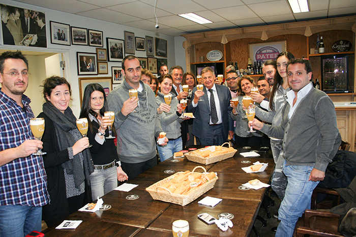 Come nella miglior tradizione dei monasteri medievali in Europa, anche nel priorato di Corsendonk, in Belgio, i monaci producevano birra, e continuarono a produrla fino al 1784 quando l’imperatore Giuseppe II d’Austria, preoccupato del potere degli ordini religiosi, non decise di sciogliere il loro monastero. Fu la fine del priorato ma non delle birre ad alta fermentazione lì prodotte: nel 1906 infatti Antonius Keesmaekers, nella sua birreria, ricominciò a brassarle sulla base delle ricette monastiche e rinominò Corsendonk la sua Brasserie. È del 1953 la chiusura della Brasserie ma ancora una volta questo non segna la fine della sua tradizione birraia. Proprio nel 1982, in occasione del 125° anniversario della città di Oud-Turnhout, Jef Keersmaekers, nipote di Antonius, lancia sul mercato le famose Agnus Dei e Pater Noster, oggi più semplicemente Corsendonk Agnus e Corsendonk Pater, non più prodotte in loco ma dalla Brasserie Du Bocq. Da quel momento in poi la Brasserie Corsendonk, pur non producendo direttamente, potremmo definirla una beer firm che “prescrive” la propria ricetta alla birreria e si occupa esclusivamente della commercializzazione, è un fermento di idee che oggi si manifestano in 8 tipologie birrarie. La nostra visita è diventata così un affascinante tour storico-culturale nel quale abbiamo potuto conoscere in primis la sede logistica della Corsendonk, con degustazione guidata di tutte le birre, e trascorrere la serata alla Brasserie Capriani, una trattoria tipica italiana di grande livello, che fa delle Birre Corsendonk la sua punta di diamante, per poi recarsi il giorno successivo a Purnode dove ha sede la Brasserie Du Bocq e conoscere tutte le fasi produttive delle birre Corsendonk, concludendo poi ad Anversa, con un giro per la città e la serata a Le Royal Café di Anversa, situato in una delle più belle stazioni ferroviarie del mondo, un locale stupendo che offre alla spina Corsendonk Blonde e Bruine (SONO LA AGNUS E LA PATER O ALTRE?). Ad accompagnarci nel tour, e nostro mentore, Renato Chiapparelli, responsabile Corsendonk Italia, con tutto lo staff dirigenziale dell’Azienda: