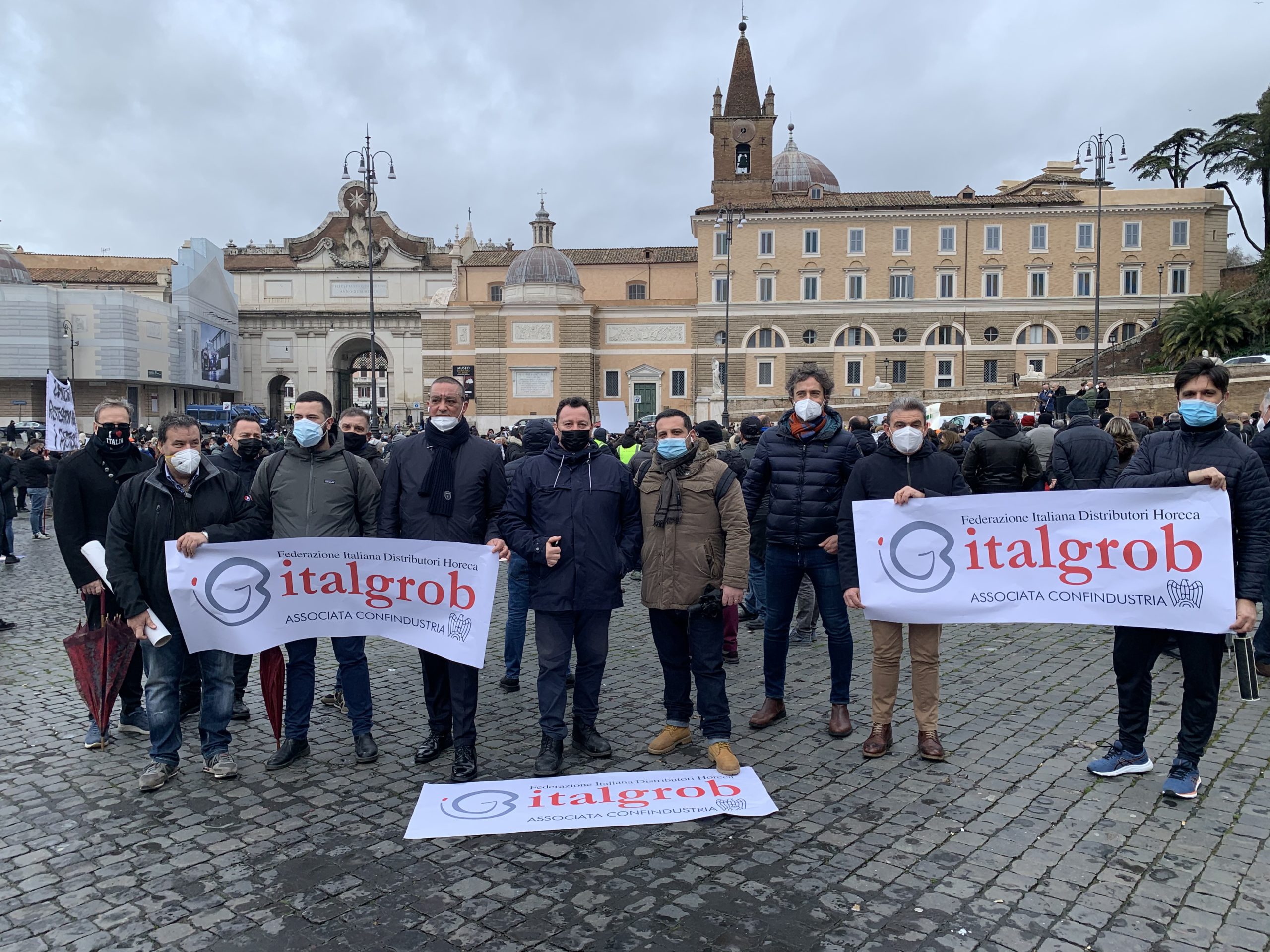 Il cielo plumbeo di pioggia non ha fermato il popolo dell’Horeca, che nella mattinata di lunedì 25 gennaio si è riunito a Piazza del Popolo a Roma.
