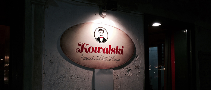 Il menu spazia dai Balcani alla Siberia, passando per Polonia, Ungheria, Romania Ucraina e Repubblica Ceca. E proprio la Repubblica Ceca la fa da padrone per quanto riguarda le birre: Kowalski è infatti Pub ufficiale Malastrana. Tre le varietà alla spina, Pils, Klaster Bock, Merlin, con spillatura da cella frigorifera, più una quarta birra “ospite” proposta per eventi specifici.
