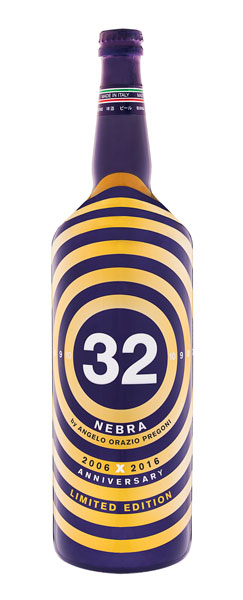 X Anniversary non vuole essere una nuova birra ma una celebrativa ed artistica interpretazione. X Anniversary segna una tappa del percorso di 32 Via dei Birrai, sigla un punto di arrivo che si trasforma in una nuova avventura. X Anniversary è il nostro modo per dire ciò che siamo: innovazione, qualità, design in un formato inedito, pertanto inedito il contenuto.