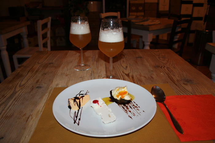 La stessa qualità si ritrova anche nell’offerta beverage: una ricchissima selezione di vini e un altrettanto ricca scelta di birre, alla spina o in bottiglia, che privilegia soprattutto la tradizione birraria tedesca: Jever Pilsner, Norbertus, Kloster, Braufactum. Sui motivi della selezione delle birre proposte Giorgio risponde:«Per vari motivi: i miei piatti, la qualità che cerco di offrire, la varietà e i consigli ricevuti… alla fine mi sono fidato anche del mio gusto personale».