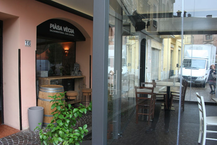 Piàsa Vècia, che abbiamo scoperto grazie al beer somelier di Radeberger Roberto Parodi, è un locale di raffinata semplicità, con un’atmosfera conviviale e piacevole. Nato meno di un anno fa per volontà di Paola e Giorgio, non è un ristorante né una birreria, ma una ‘salsamenteria con cucina’: un luogo dove poter acquistare prelibatezze gastronomiche del territorio, in particolare una selezione dei migliori salumi e formaggi.