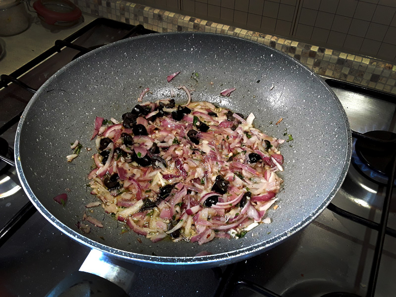- rosmarino, 1 cipolla di Tropea, aglio, olive nere denocciolate